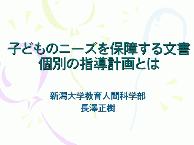 ニーズの調査ですが、最近は保護者・親の願いというものを学校も大事にしてきているようになっています。いい傾向だと思います。保護者の願いとあわせて教師の願いというのも必要になるかと思います。もっとも大事なのはやっぱり子どもの願いだろうと、親の願いでもなく教師の願いでもない、子どもの願いだということです。ADHDや高機能の子どもなどは、カウンセリング的なやりとりの中で「君はどんなふうになりたいの?」というような聞き方をすることがあります。誰々さんと友達になりたいとか、みんなから嫌われないようになりたいとか、これが本人の願いですね。やはり話せる子には、本人の願いを聞く保障をしてやることが大事だと思います。